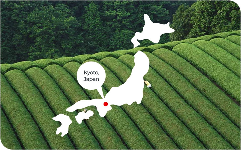 Mūsų matcha atkeliavo tiesiai iš arbatos meistrystės širdies – Kyoto, Japonijos. Šiame regione, daugiau nei 200 metų puoselėjamame ūkyje, kruopščiai auginama mūsų ceremoninė matcha.